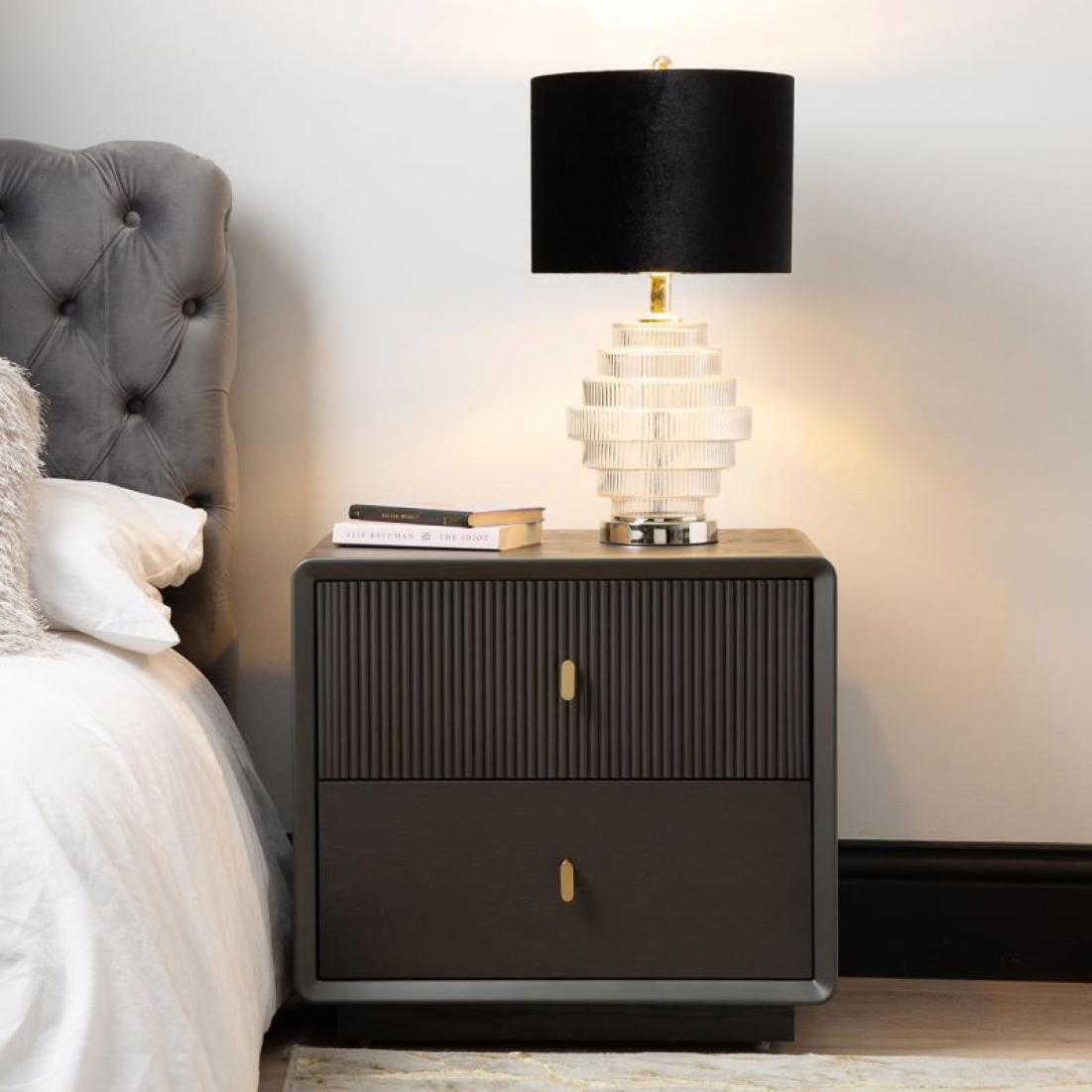 The Amelie Cream Elm/Smoke Grey 2 Drawer Bedside is a charming piece made of MDF with a veneer finish in a soothing cream color/elegant grey hue. Featuring two drawers, it blends functionality with style, offering a touch of elegance to any room while providing convenient storage space.