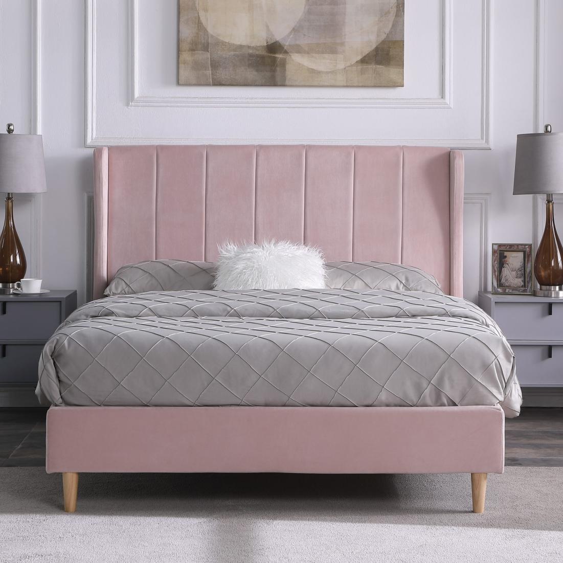Elevate your bedroom decor with the stunning Amelia bed. With its high headboard and bold design, this bed exudes sophistication and glamour, adding a touch of class to any bedroom. The upholstered bedframe comes in a variety of lush velvet fabric colors, allowing you to find the perfect match for your home. The wooden sprung slats provide maximum comfort and support, ensuring a restful night's sleep. Experience the ultimate in style and comfort with the Amelia bed and create a beautiful and luxurious sleeping space in your home. With its sleek design and functional features, this bed is a must-have for anyone looking to upgrade their bedroom decor.