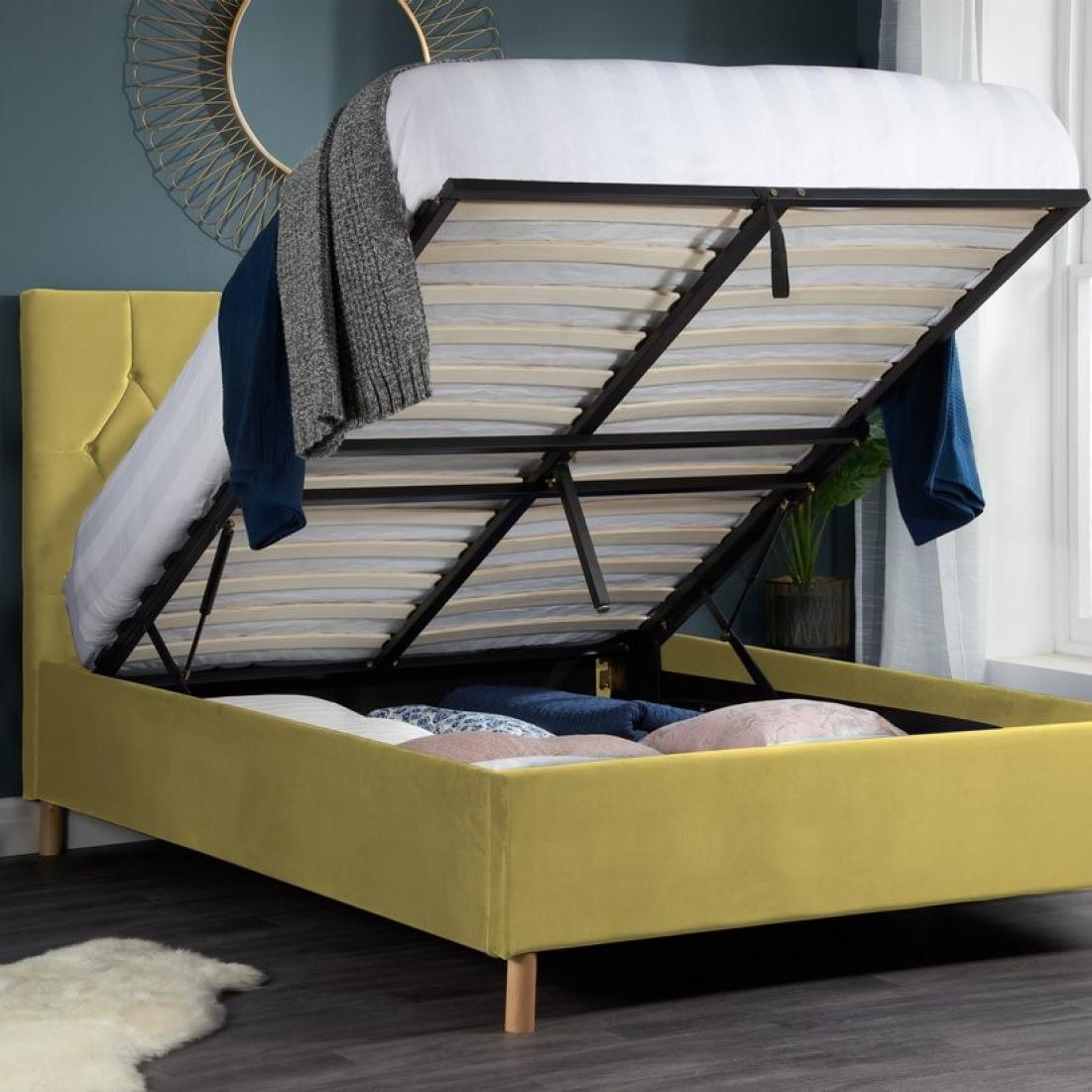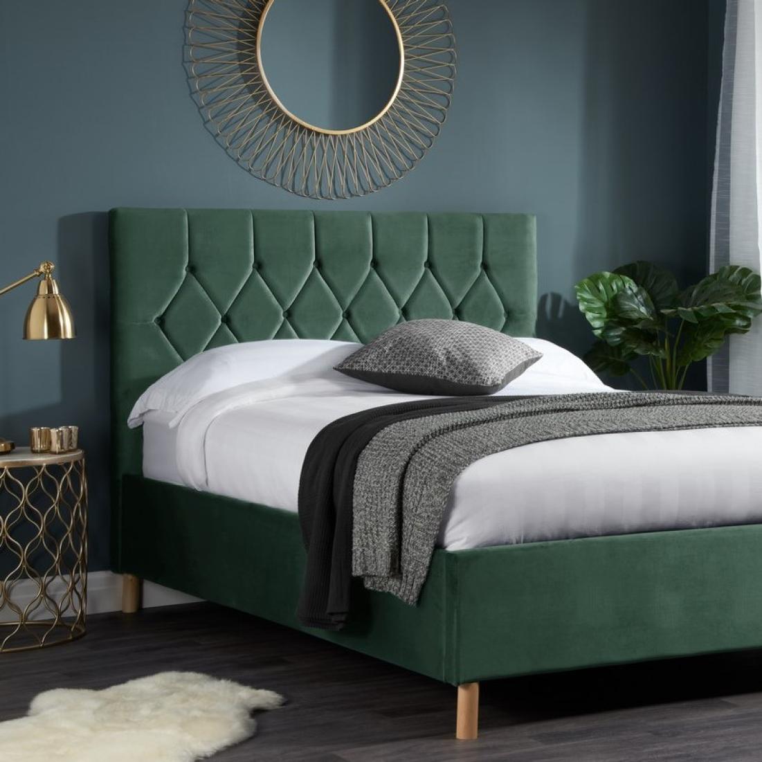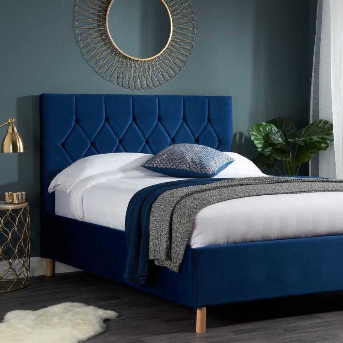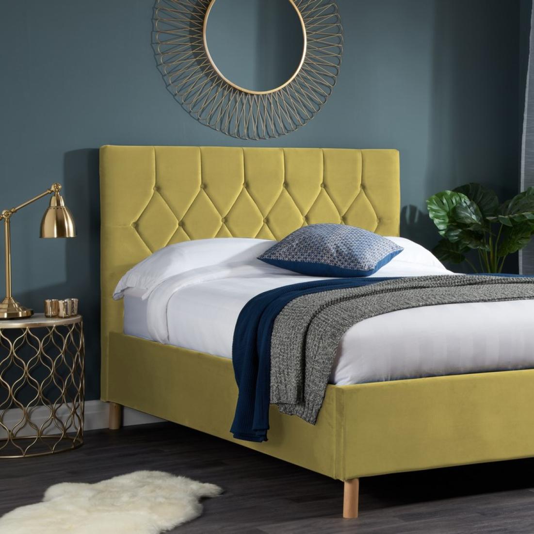 The Loxley bed is available in a range of attractive colors such as mustard, grey, green, and blue, making it an ideal choice for anyone looking to add a touch of sophistication to their bedroom.