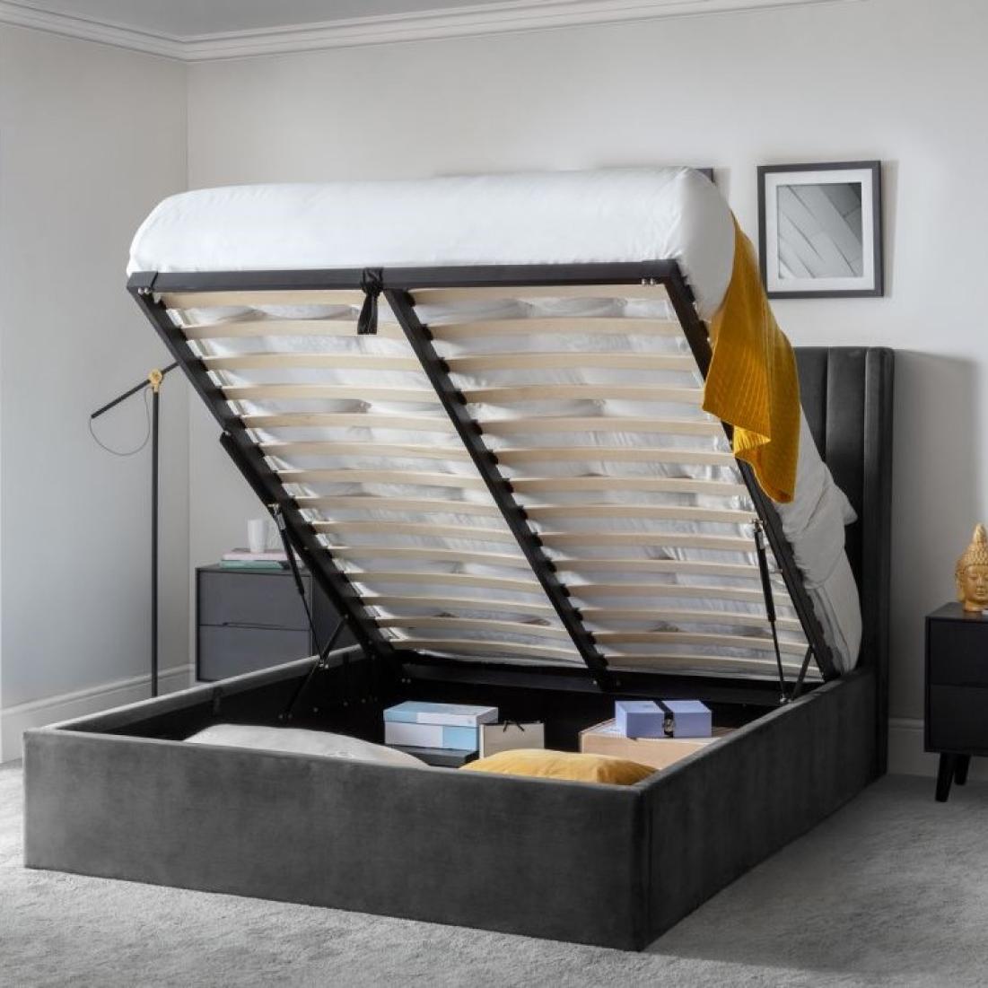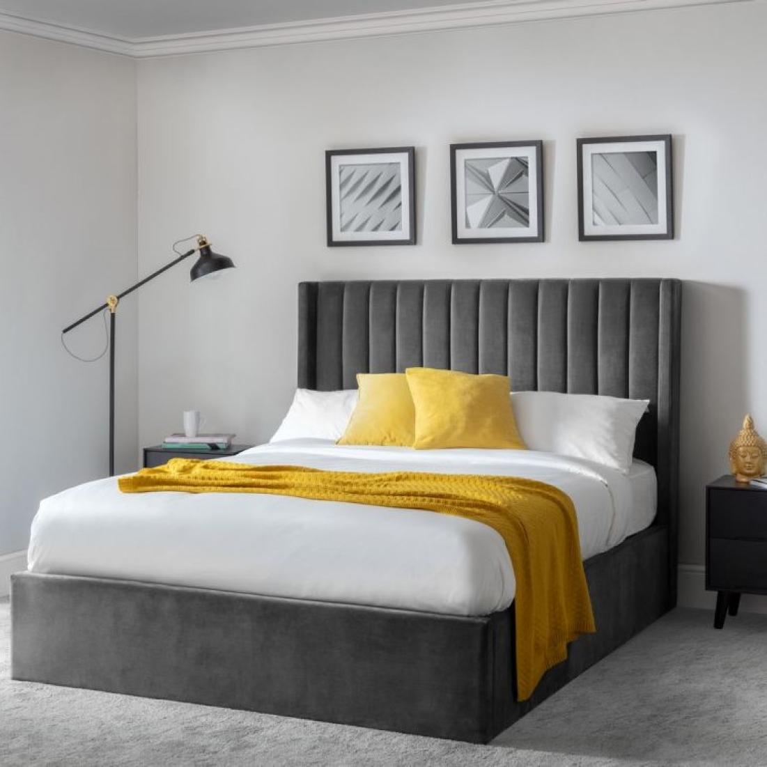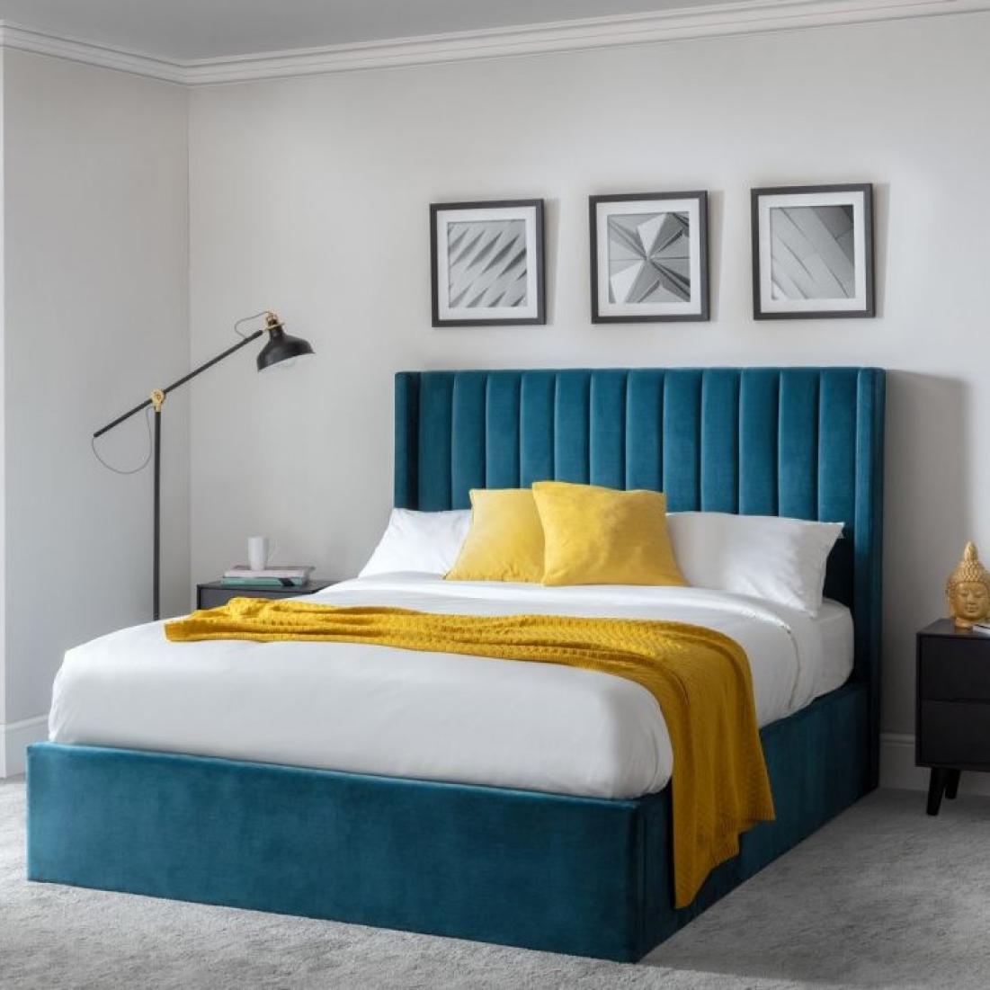 The Langham Storage Bed features an opulent scalloped headboard that can complement different bedroom styles, coupled with an ottoman base that provides an excellent solution for individuals who want to optimize their bedroom storage. This exquisite bed combines sophistication with functionality, making it an ideal fit for contemporary homes. You can choose between the exquisite grey or gorgeous teal color options.