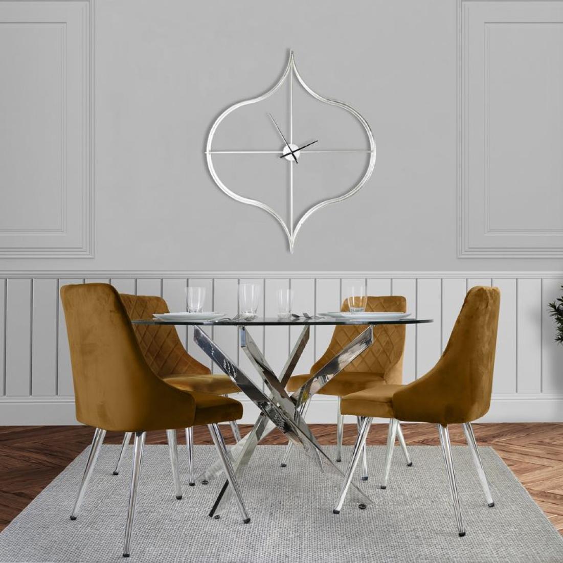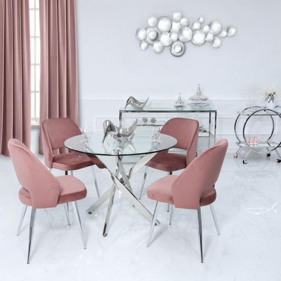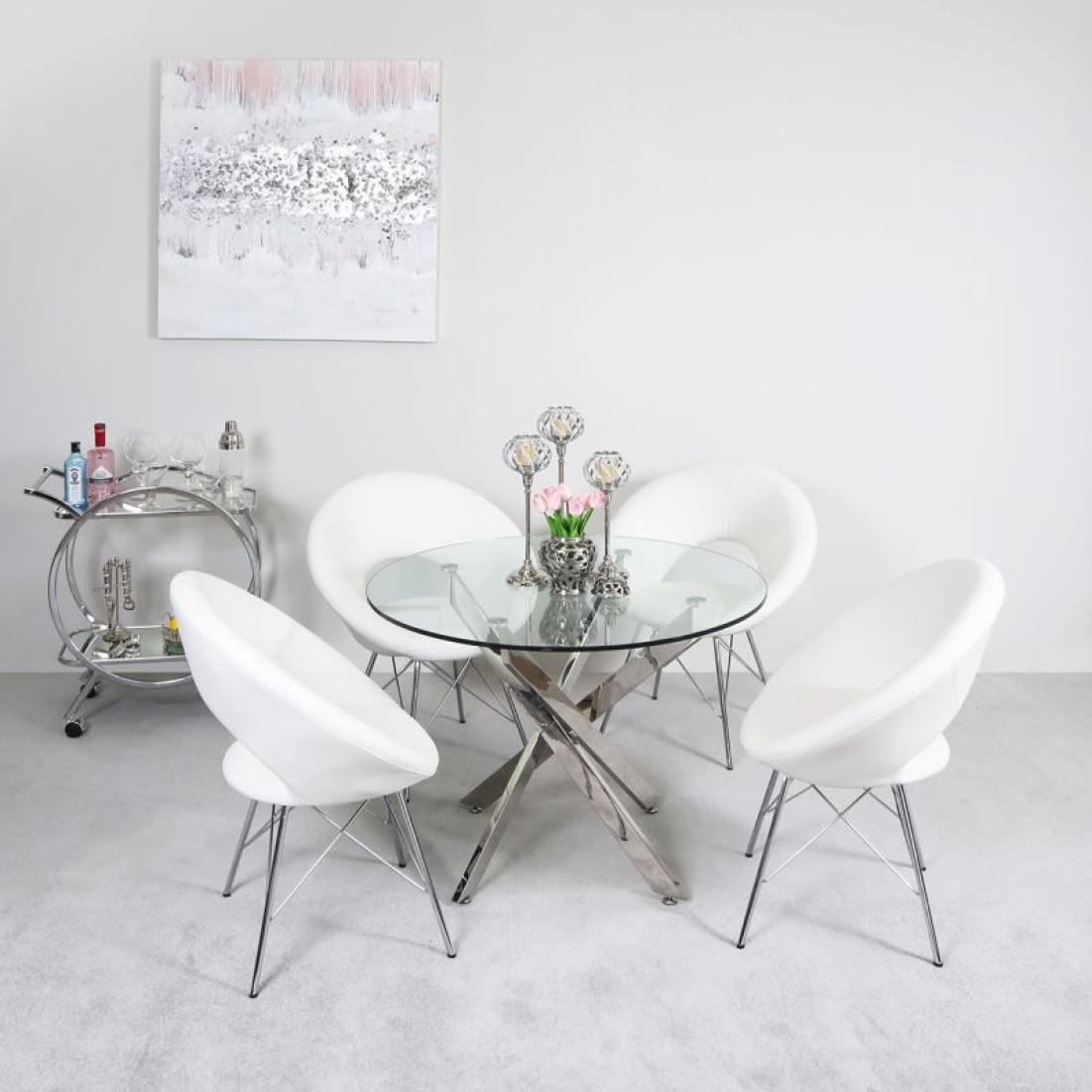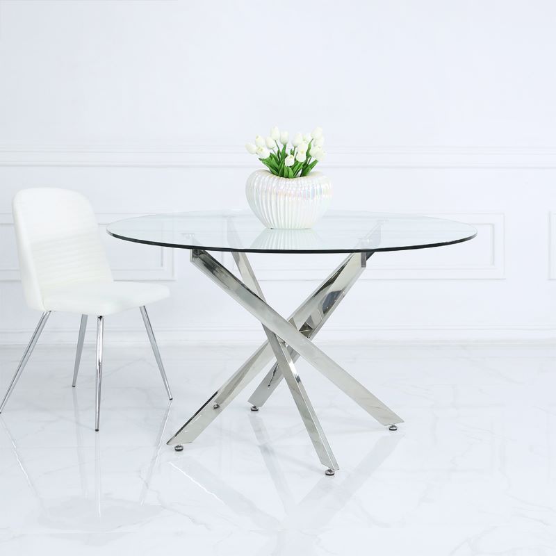 Add a fresh new look to your dining/ breakfast room with the effortlessly sleek Nova dining table that can seat up to 4 people. Featuring a crisscross chrome base and a durable round tempered glass table-top, this is a wonderful addition to any modern family home.