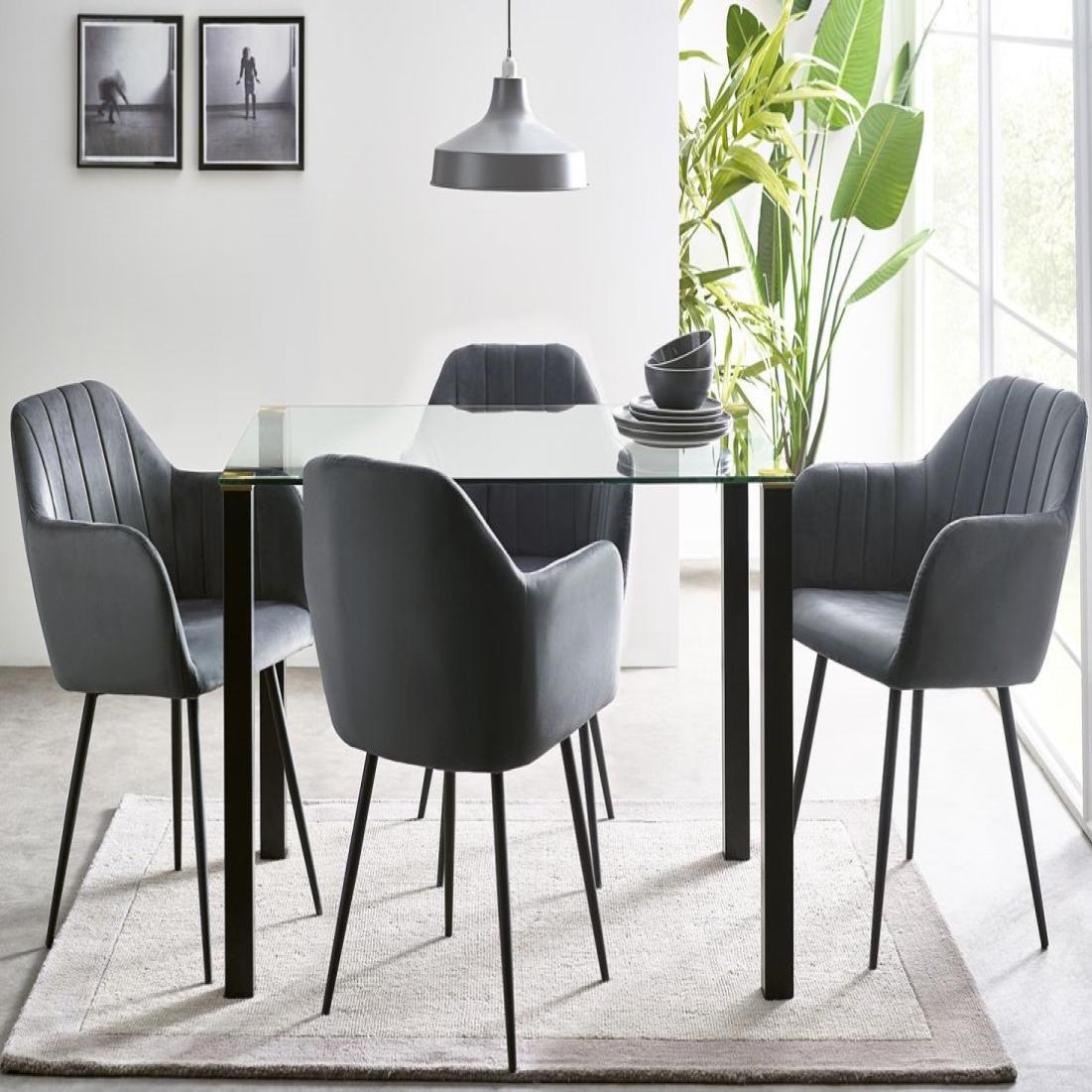 The Piero table is a contemporary and compact gold and tempered glass dining table that is perfect for modern living. The clean and crisp finish forms a versatile look, and statement black legs makes this a great addition to any home. This table is ideal for those more compact spaces.