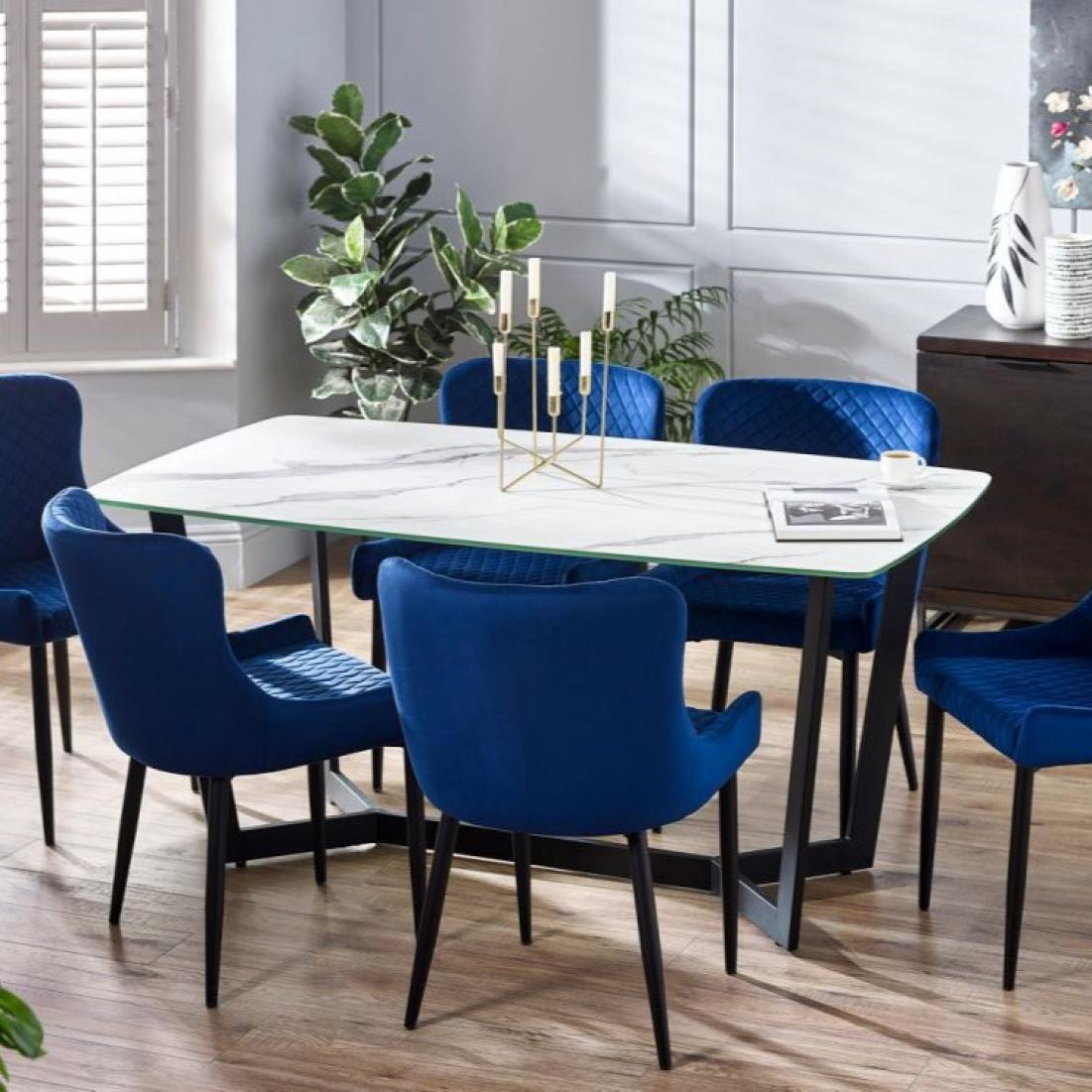Inspired by beautiful Italian marble, the Olympus collection delivers character and glamour to your space. With statement, contrasting black bases – this look is destined for any contemporary home. The collection includes a dining table, lamp table and coffee table in either option of white or black marble.