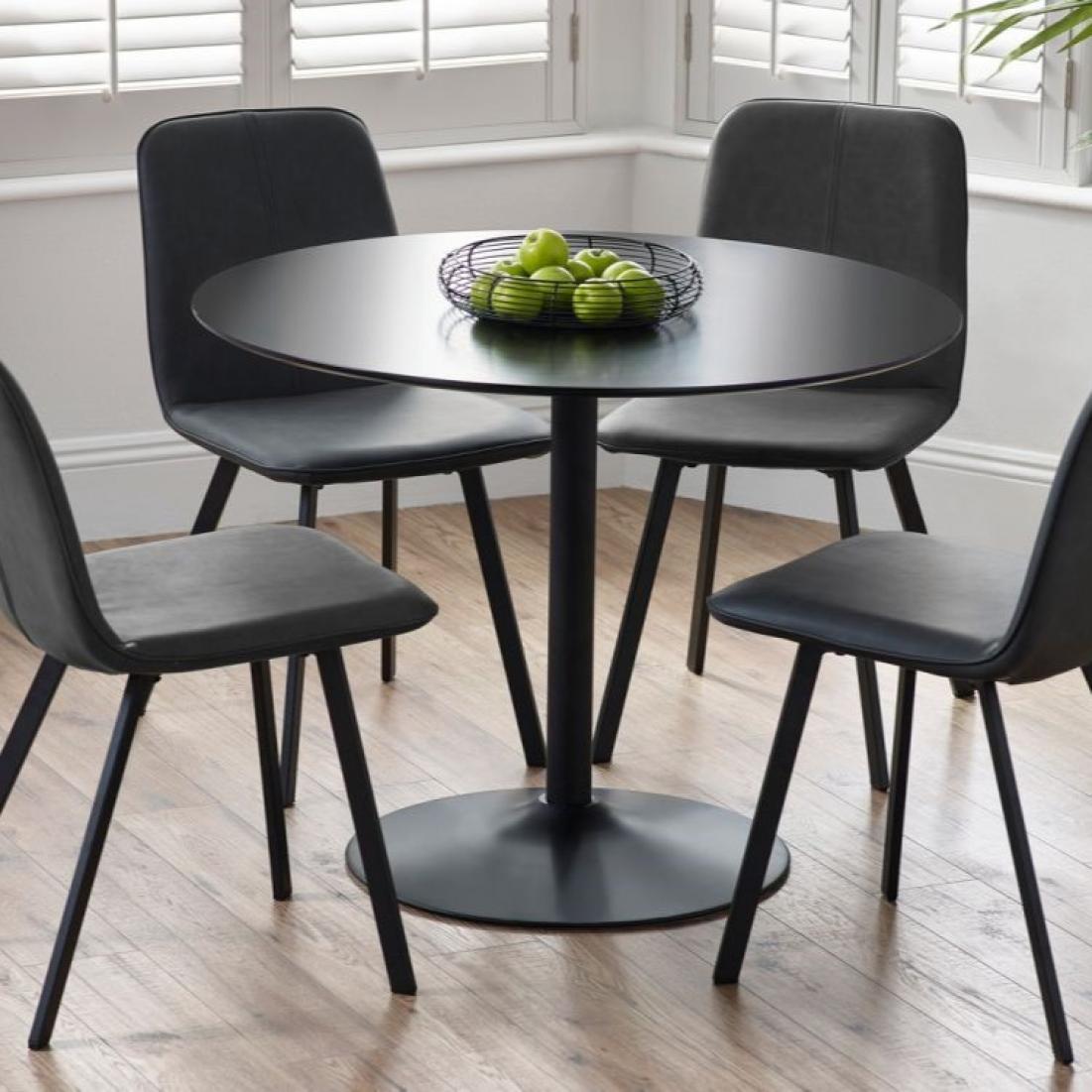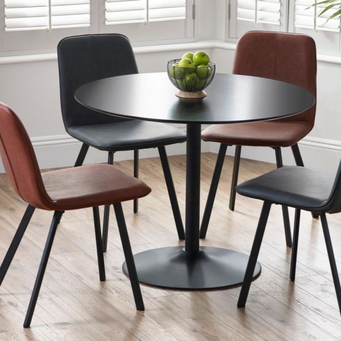 The Nero round table is an ideal space saver for smaller dining areas. Featuring a black pedestal base this simple, yet elegant design sits with a multitude of different chairs.