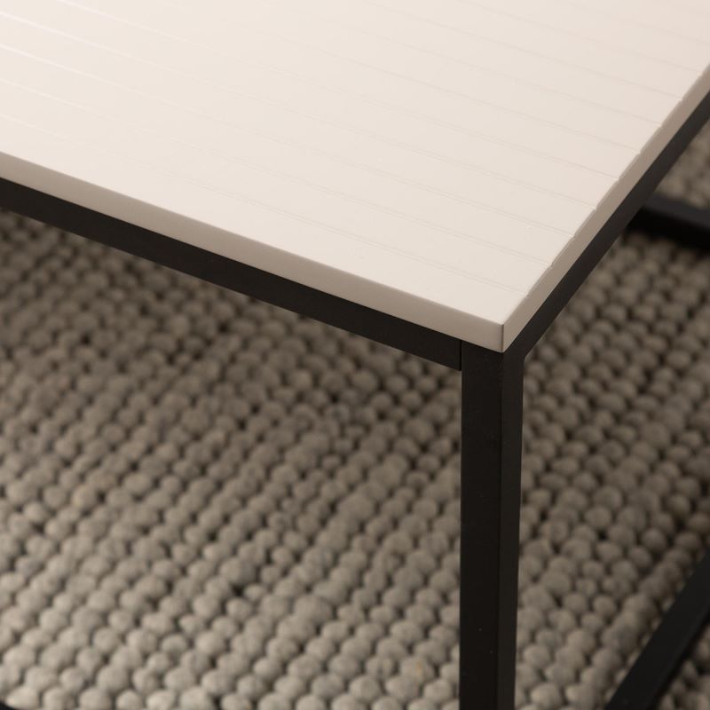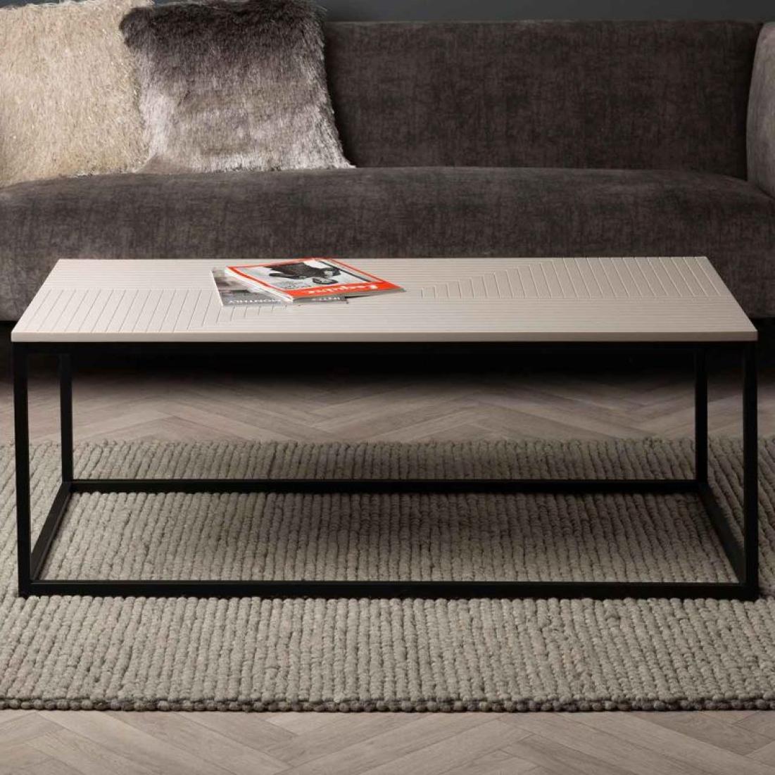 Inject a splash of industrial chic to your interior with the Page coffee table. It features a classic black metal frame with a striking grey wooden, linear patterned top.
