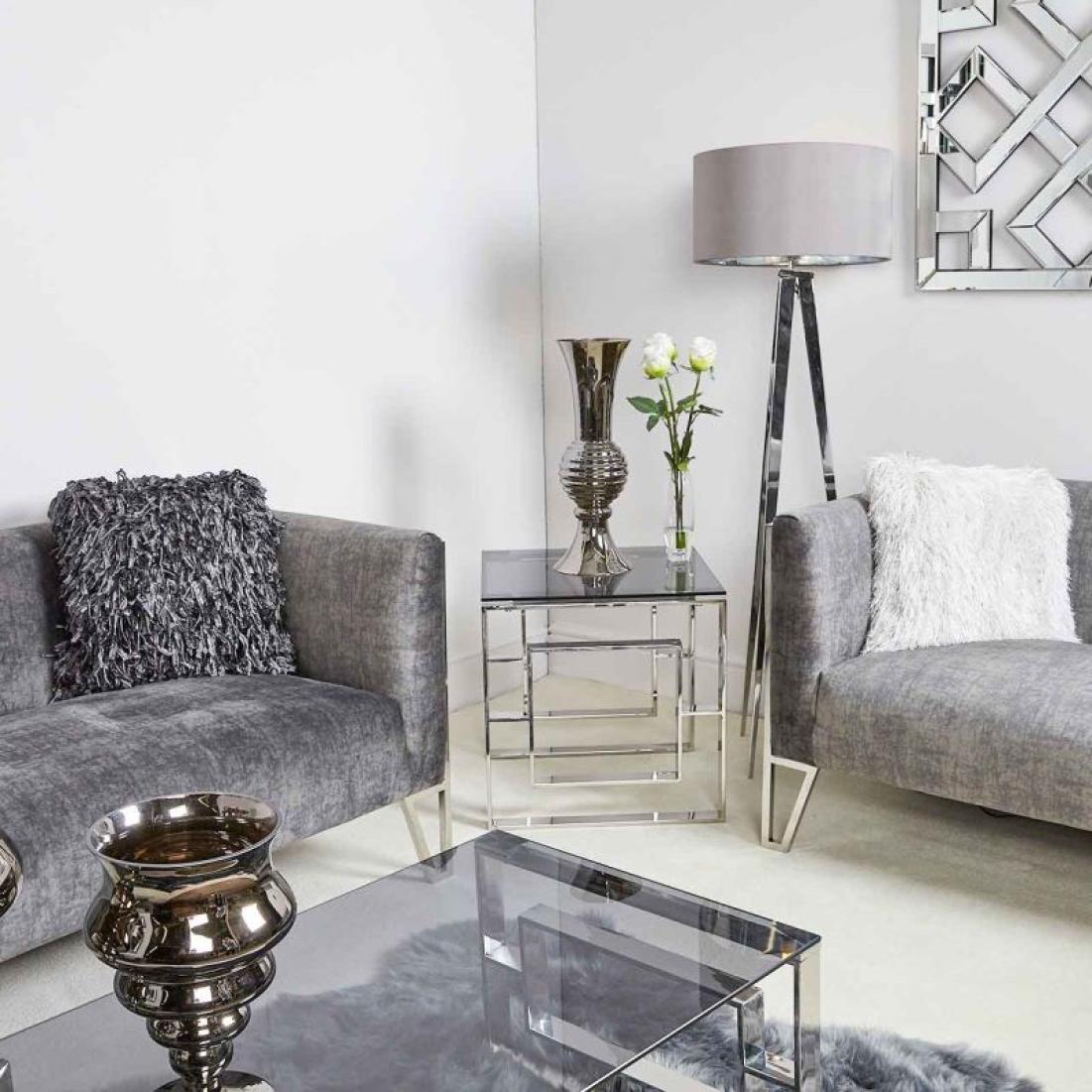 The simply stunning Apex end table will wonderfully complement classic and modern furniture, with its understated and stylish steel gold effect or steel chrome effect. The glass table features a sleek glass tabletop or tempered smoked glass table top, providing perfect entertainment space and also a fantastic option for any style of living room. Also perfect as end/sofa/bedside/display/occasional table.