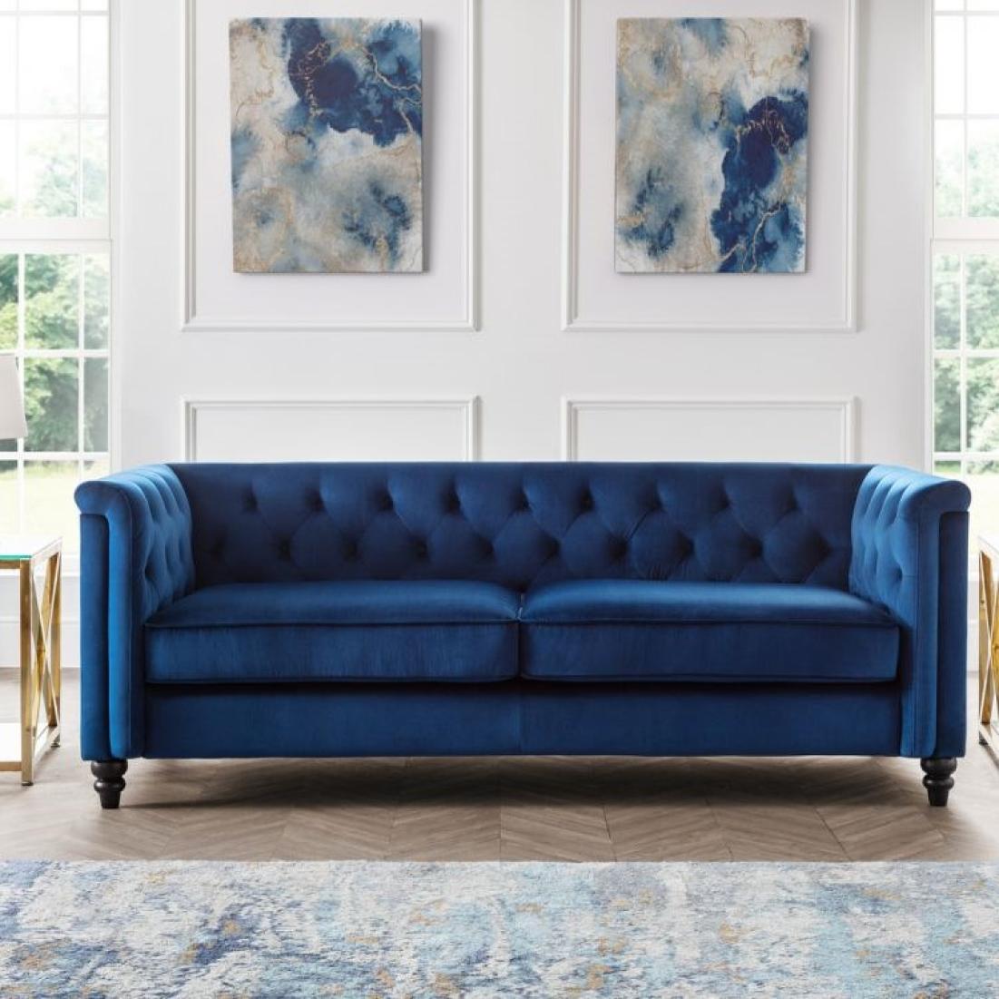 The Sandringham collection exudes timeless elegance and boasts impeccable tailoring, making it a perfect addition to any living area. Its design features a buttoned back, contrasting black legs, and a stunning blue velvet finish, creating an inviting and classic aesthetic. The collection offers a chair, two-seater, and three-seater sofa, providing a range of options to suit different spaces and needs.